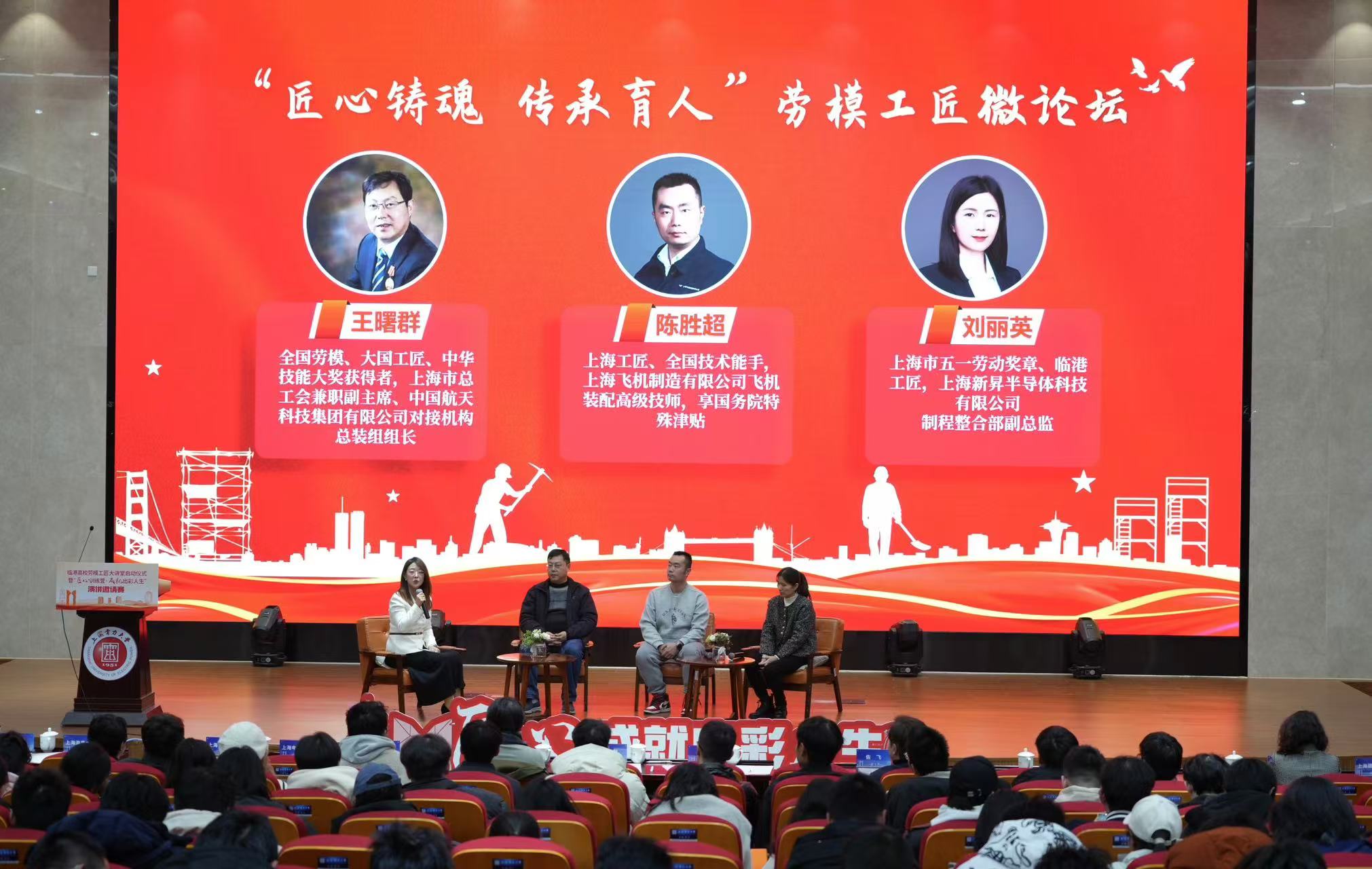 这场别开生面的“临港高校劳模工匠大讲堂”启动仪式暨“匠心训练营·成就出彩人生”演讲邀请赛活动,由上海市教育工会、临港新片区党群工作部、上海临港产业园区工会、上海临港产教融合促进中心与上海电力大学联合主办。上海电力大学党委副书记、校长顾春华表示,“大讲堂”的启动将进一步夯实劳模工匠精神传承、传播的长效机制,在激发奋斗动力、引领社会风尚、促进创新创造、完善学生品格方面发挥积极作用。“这不仅是一次知识的传递,更是一场精神的洗礼,希望同学们能够从劳模工匠的身上汲取力量,为未来努力奋斗。”