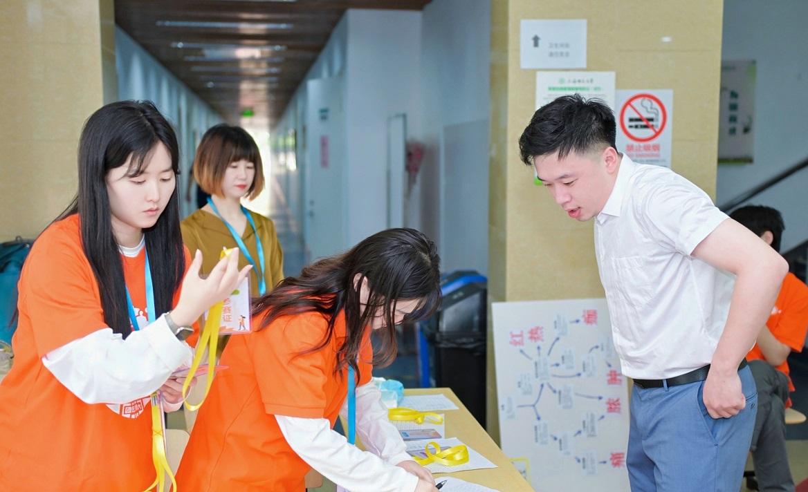 赛场内热火朝天,赛场外秩序井然。一群身着橙色上衣的精干志愿者团队,根据岗位要求细分为多组,专业细致地默默守护比赛。“30多名学生志愿者主要来自学校教育学院,他们服务的也许是自己未来的领导、老师、同事,也希望通过服务青教赛,帮助学生们树立成为一名好老师的远大目标。”上海师范大学赛事相关负责领导介绍,从2014年开始,上海师大作为连续多年支持举办上海市青教赛的“东道主”,几位校领导全程指挥、各部门通力配合办赛,已经形成一种校园文化传统和氛围。保卫处负责行车路线、维护秩序和教具运送等,资产处去年专门采购了一批新电脑机箱作为硬件保障,网络信息办提前检测好网络信号,外宾楼和后勤两部门协力保障餐饮品质,教务处和研究生院及时调整课程安排,方便赛事期间封楼管理。“上海师大争取以优质的服务保障工作,带给参赛教师和评委暖心的守护和支持。”