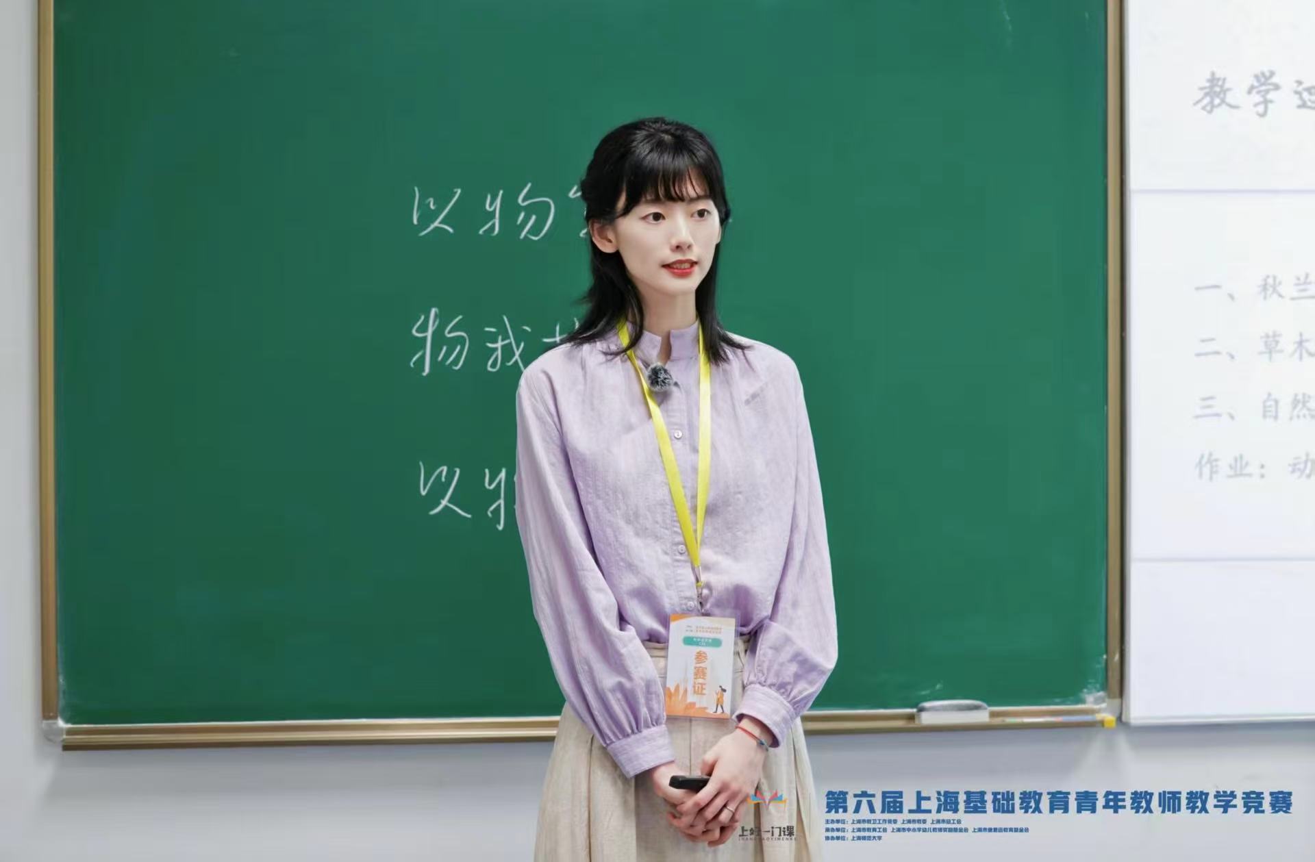 95后顾妍婷立在讲台边,恍若从宋词中走出的江南女子:身姿高挑,秀发垂肩,话音清泠,温婉纤弱,眉眼间却蕴着温柔而坚毅的风骨。2025年,是她踏入上海市市西中学的第八年,也正是这一年,她接连斩获市中青赛、市青教赛和全国“四方杯”教学竞赛三个一等奖。“我很喜欢一句话‘贤士君子,自植其身’。”她说,“当十个教案提交时,于我而言,比赛已经结束,因为这个过程就是最大的成长和礼物。”