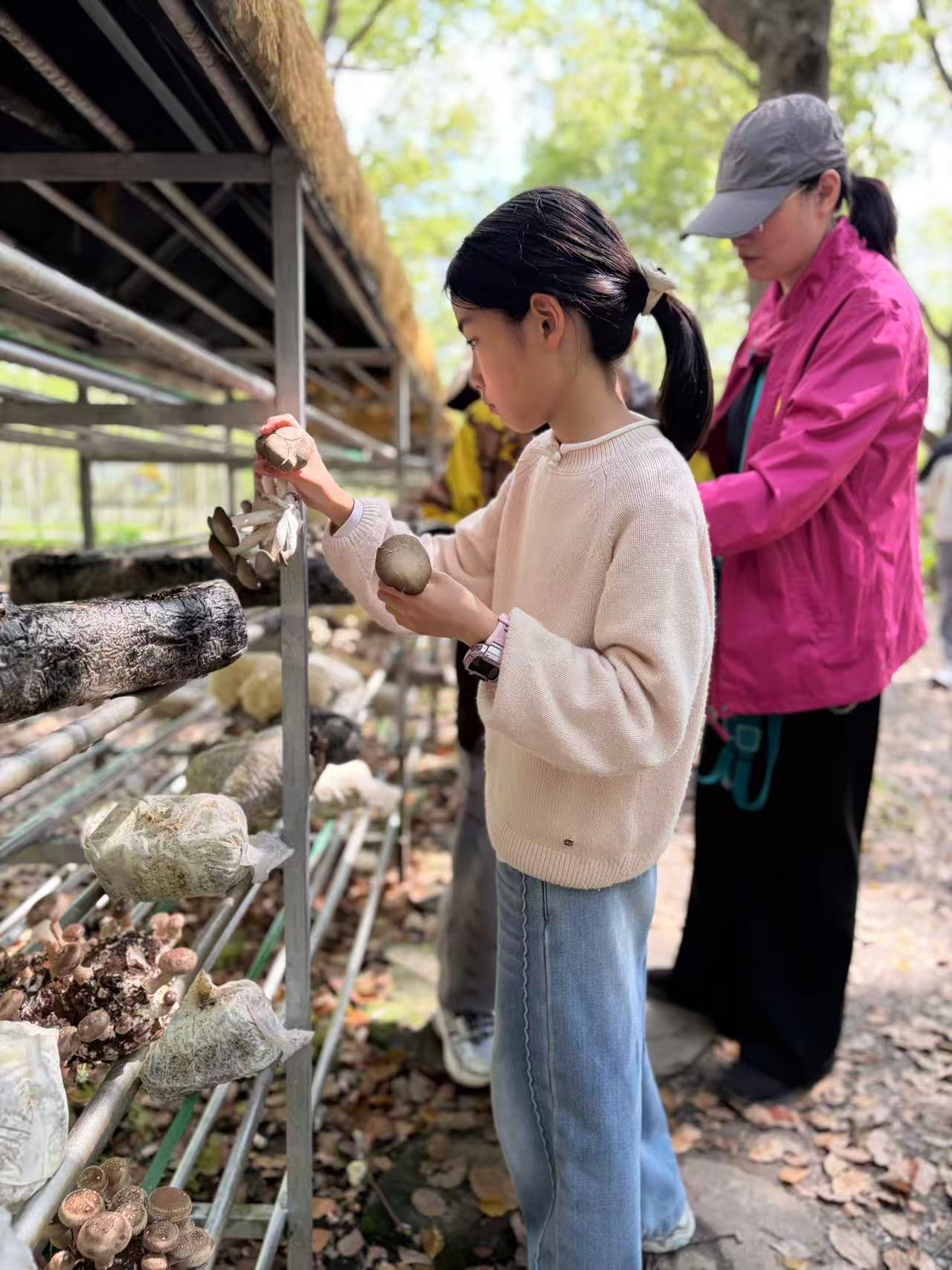 “蘑菇的种子叫什么?叫孢子。”“采蘑菇的手势是怎样的?”“如何辨别毒蘑菇……”下午,在工作人员的一番科普后,“小记者”们挎起小篮子,循着泥土的清香,在草丛与树荫间仔细寻觅。孩子们兴奋地分享着自己惊喜发现,小心翼翼地将采摘到的蘑菇放进篮子。随后新鲜蘑菇被清洗干净,孩子们在家长和老师的帮助下,参与制作了一盘美味的蘑菇天妇罗……