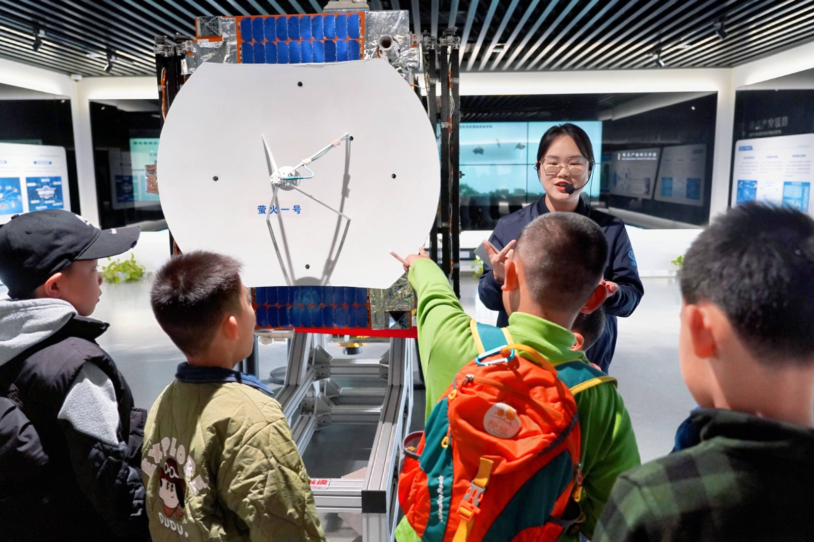 活动现场,小记者们首先走进航天展厅,近距离参观萤火一号卫星真机、金牌火箭模型、风云系列卫星模型,直观感受航天科技的硬核实力。随后,他们走进飞行影院和巨幕展厅,通过探月、中国空间站、问天等三部巨幕影片,全方位、多角度了解航天知识,仿佛置身浩瀚太空,真切感受航天飞行的震撼。