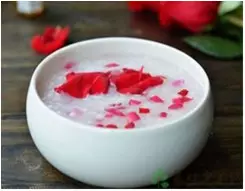 大米100g、山药半根、阴干之玫瑰花6-9克。