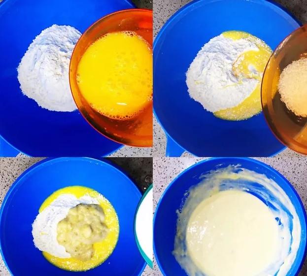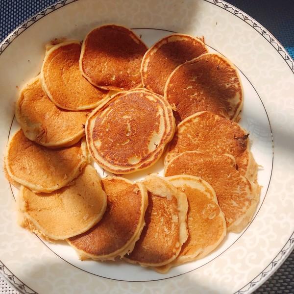 用一根香蕉,一盒牛奶,加上两个鸡蛋,适量面粉,用搅拌器轻松打匀面糊,放到平底煎锅煎成两面略有焦黄的松饼,香甜美味,营养丰富!