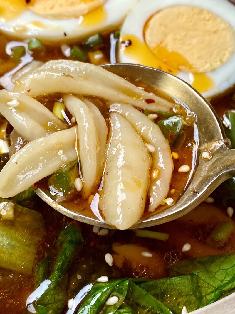 2、剪面需要时间,所以刚开始要用小火煮,不然早下锅的面已经熟了,后面的还是夹生的。(剪刀面还是有一定的厚度的,最好多煮一会儿。)