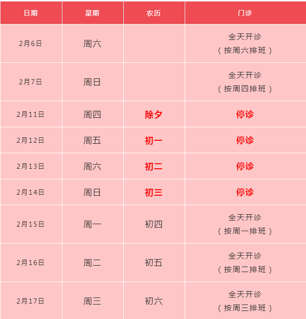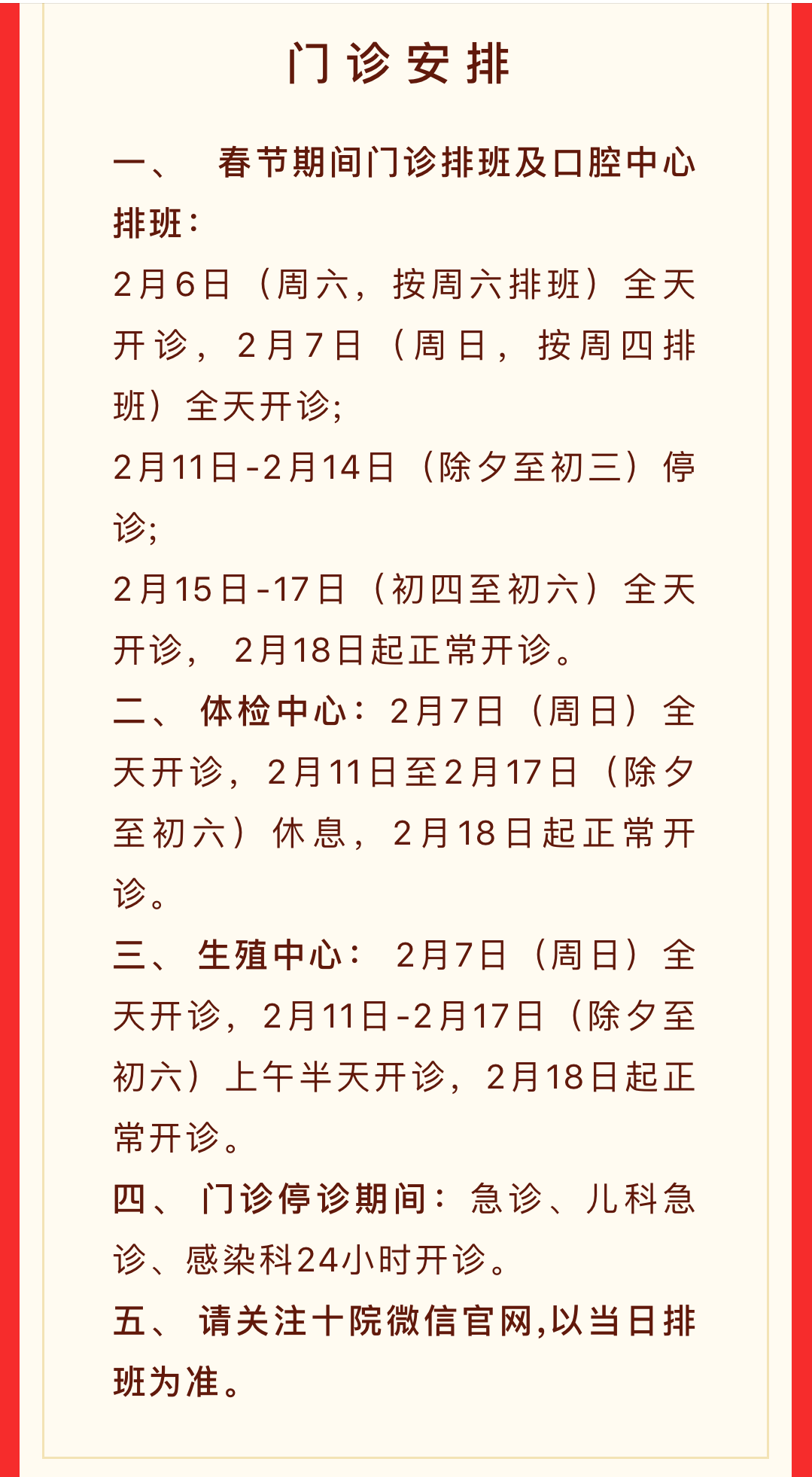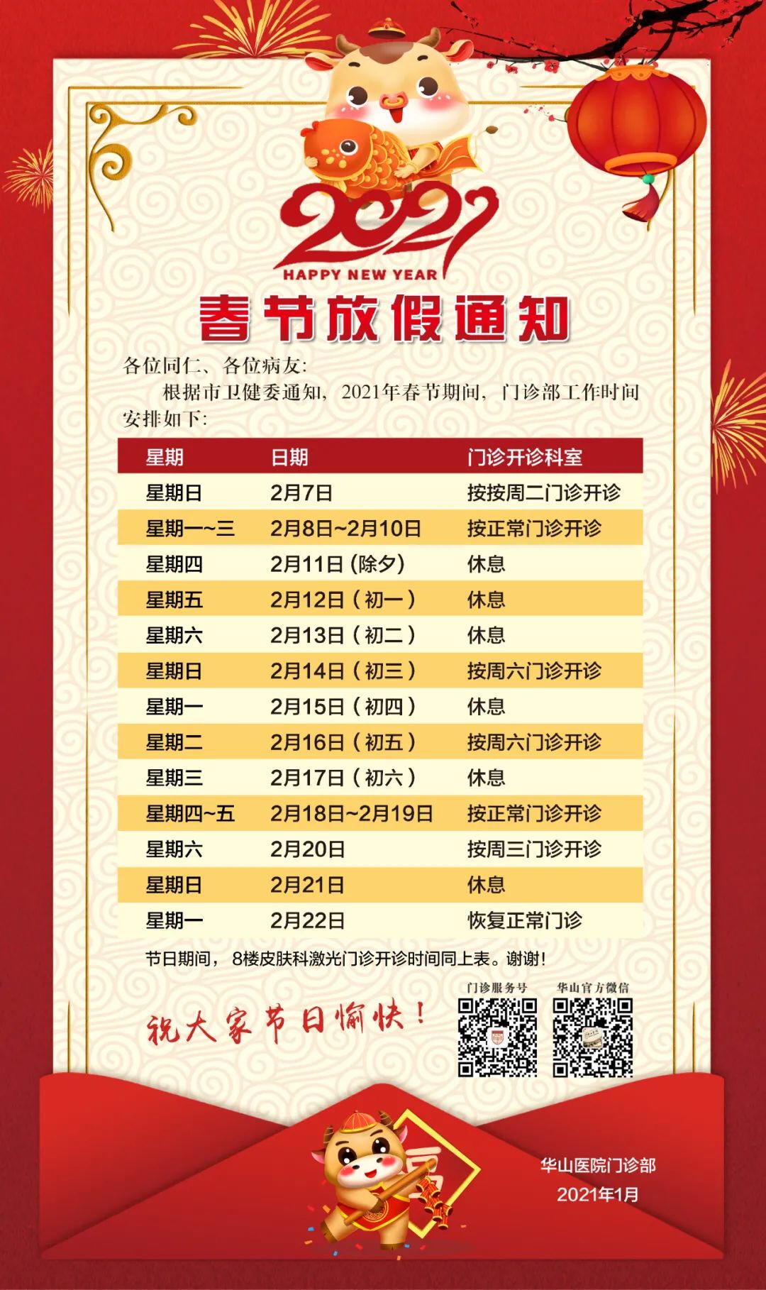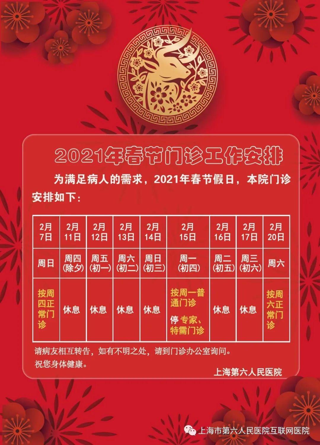 摘要: 2021年春节静安区、徐汇区部分三甲医院的门急诊放假安排,有备无患,请相互转告!