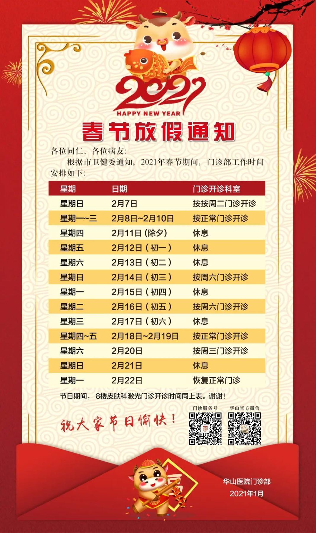 【2021春节就诊指南】静安区、徐汇区部分三甲医院的门急诊放假安排,人手一份,有备无患!