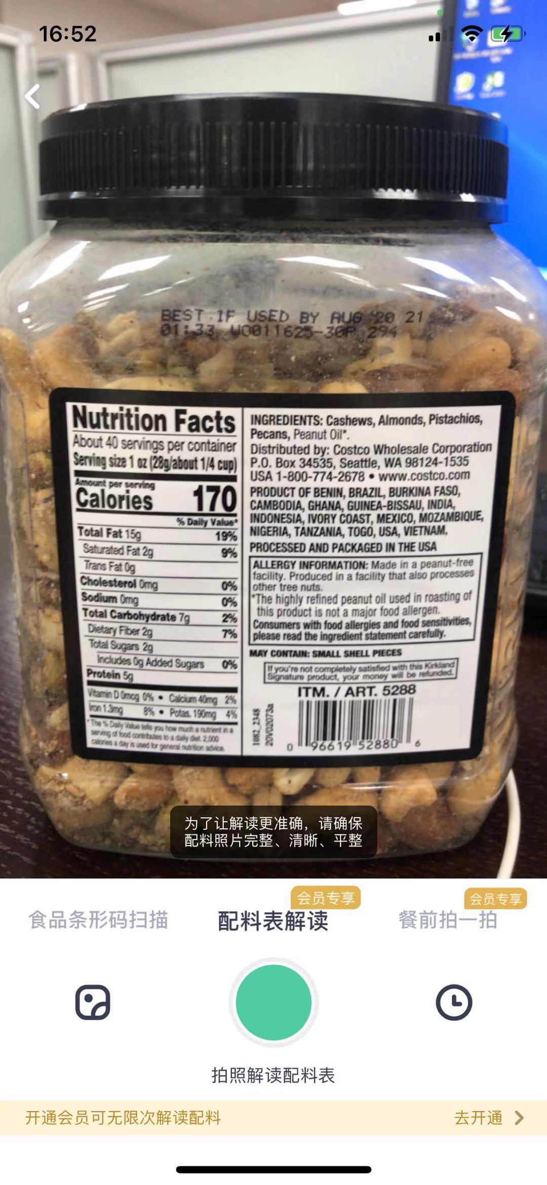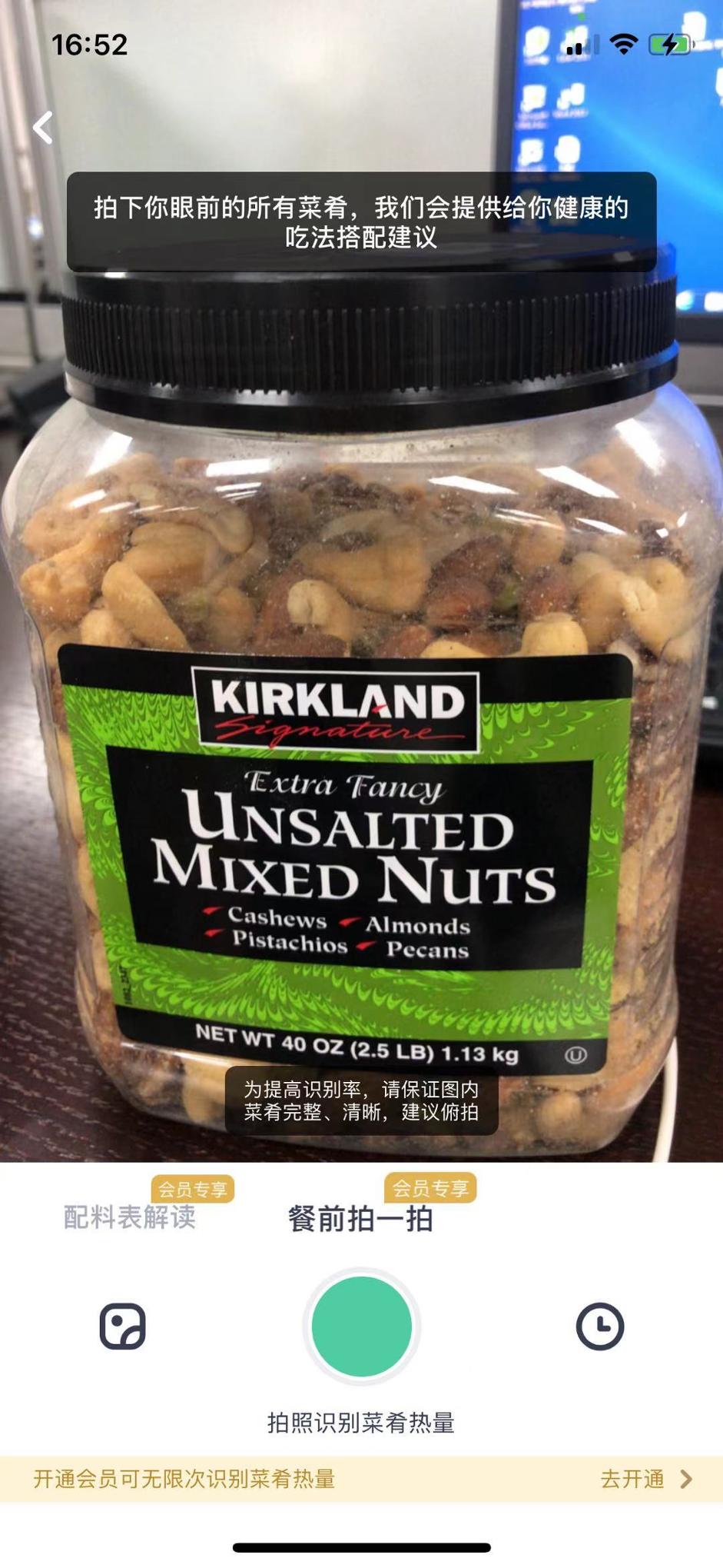 它还有餐前拍一拍的功能,可以识别所拍食物的大概热量,还能解读配料表,分析营养结构,极大方便了大家热量摄入的记录和管控。