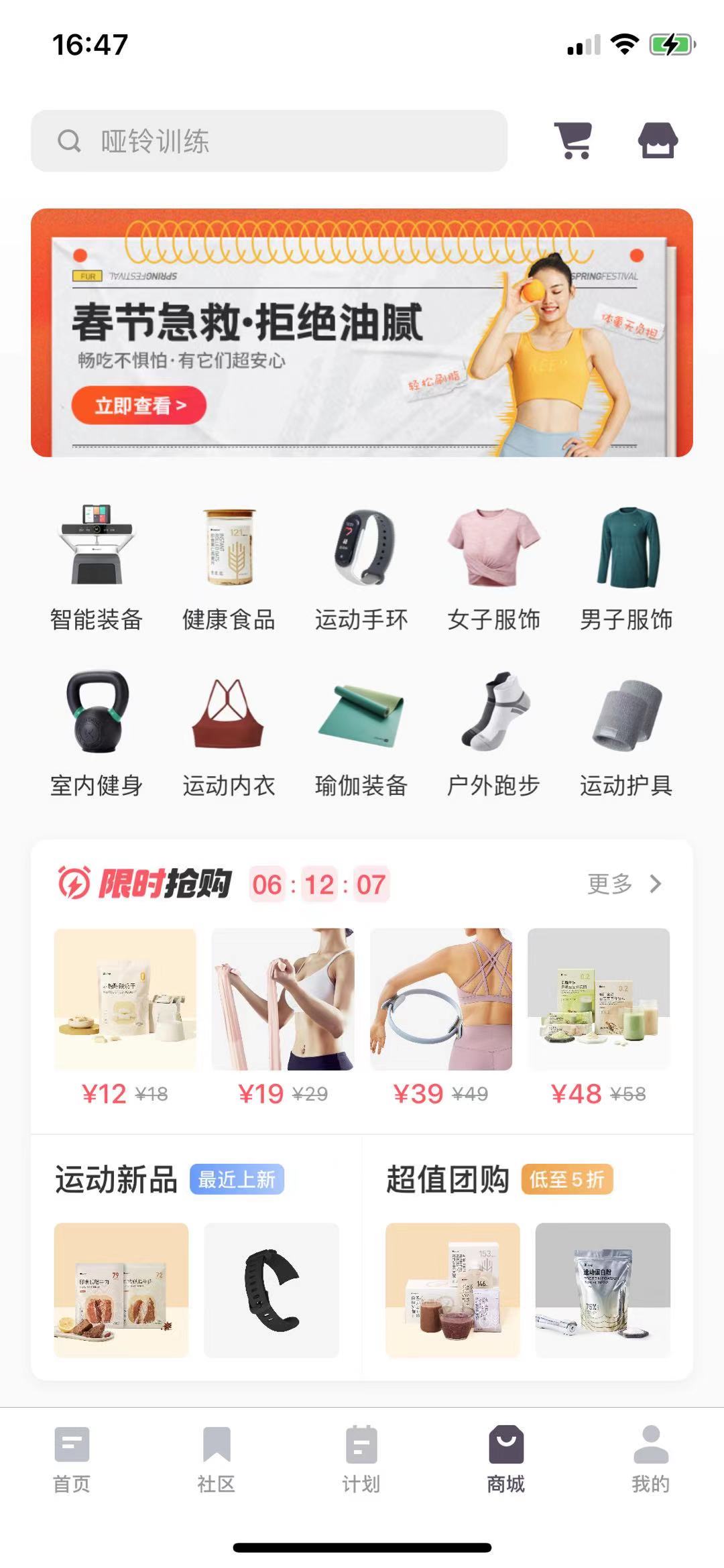 还有相应的运动辅助器材、服装、减肥代餐等也能一站式购齐。