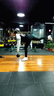 双手提壶铃,单脚支撑做硬拉动作,另一侧脚在体后做平衡,维持骨盆中立位,背部保持挺直,屈髋向下接近地面,挺髋向上身体恢复直立姿态。