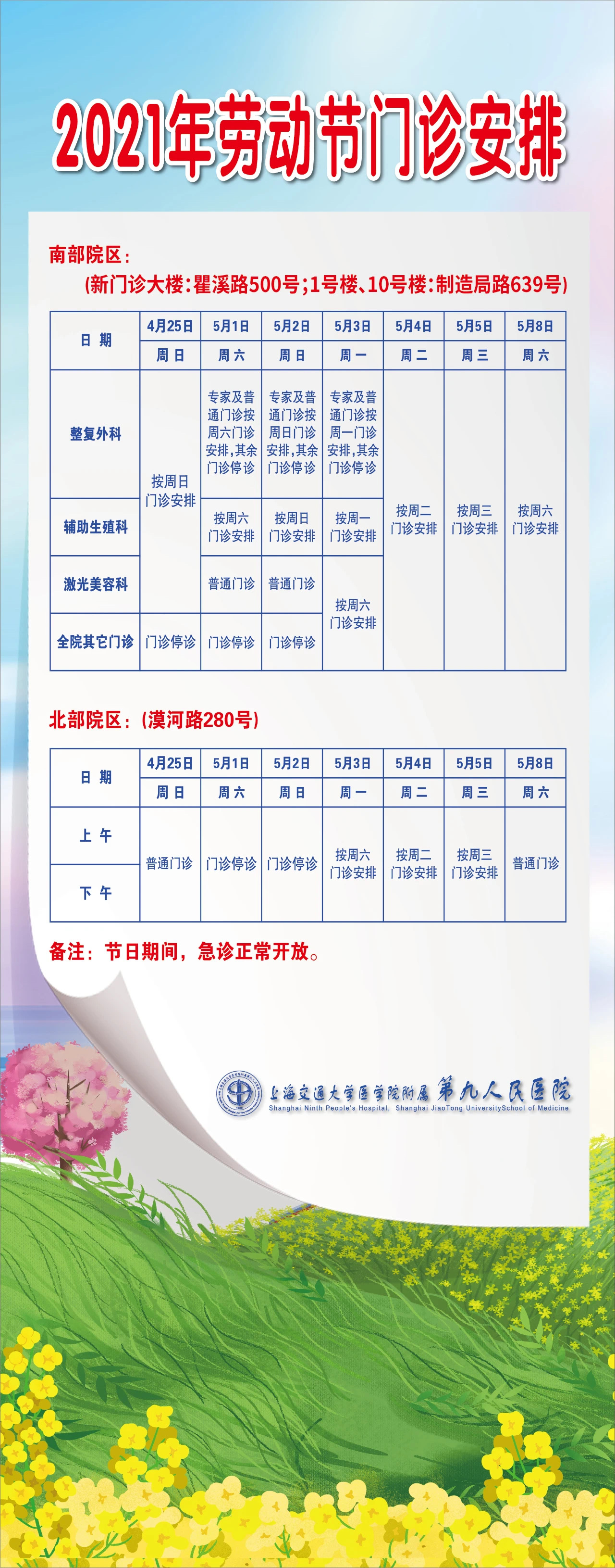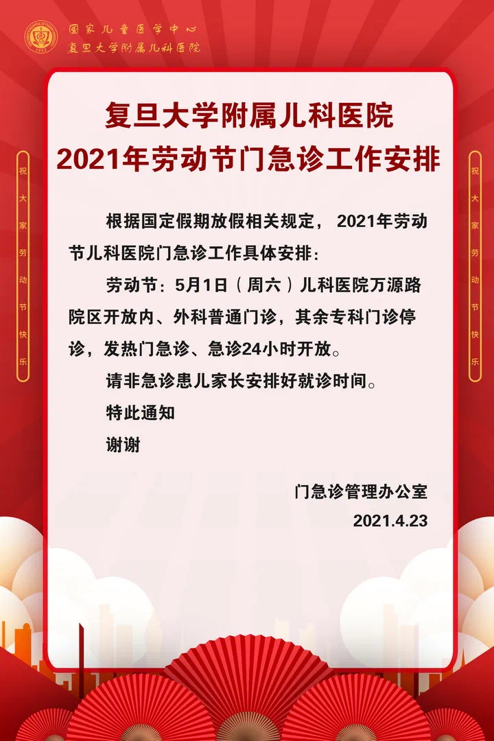 摘要: 2021年五一黄浦区、闵行区部分三甲医院的门急诊放假安排,有备无患,请相互转告!
