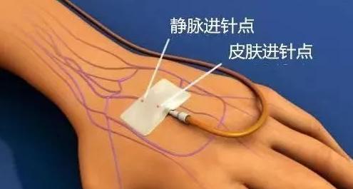 护士在进行静脉穿刺的时候一般分为两步进针,也就是先以一定的角度刺破皮肤,再沿血管走形刺入血管,这样皮肤进针点和静脉进针点之间就不免存在一定的距离。