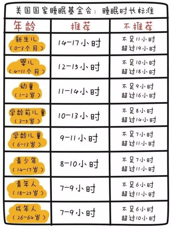 美国国家睡眠基金会给出孩子睡眠时长的参考