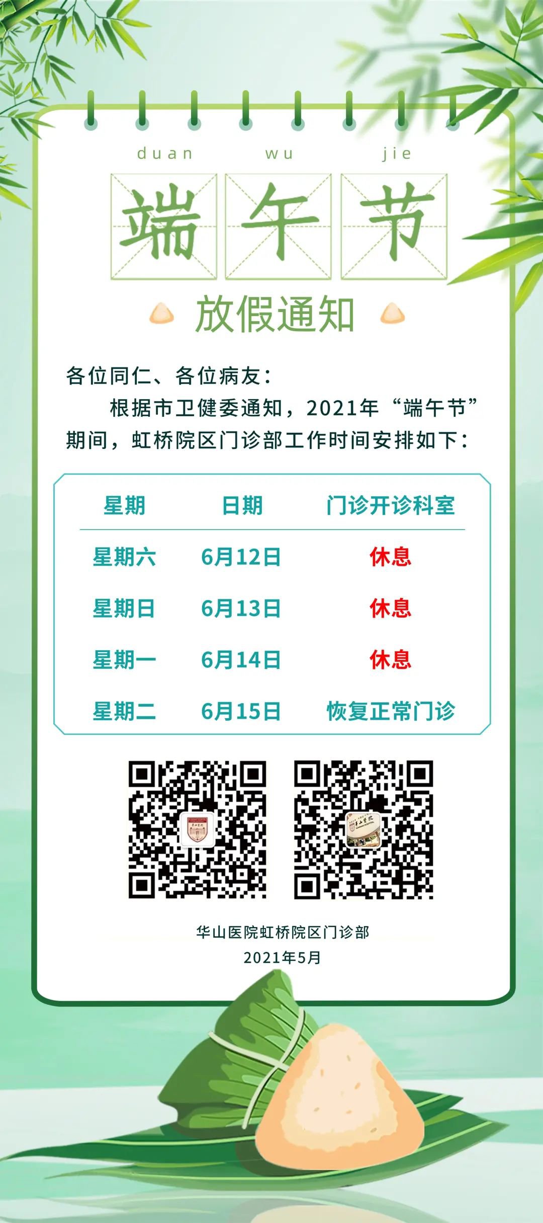2021年端午假期即将到来,小编搜罗了本市三甲医院的门急诊放假安排(部分医院假期安排待更新),有备无患,请相互转告哦!