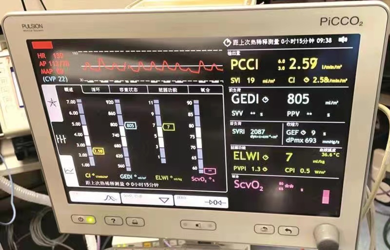 该技术是经肺热稀释技术和脉搏波型轮廓分析技术的综合,用于进一步的测量血流动力监测和容量管理,提供前负荷容量参数和连续心排量,同时监测后负荷心肌收缩力,肺水和容量反映性。该系统也是一种连续血流动力学监测方法,具有微创、实时等优势。重症监护室中患者病情重,血流动力学不稳定,液体治疗难度大,输什么液体,输多少液体对于ICU医生来说都是考验,丝毫马虎都有可能造成不可挽回的后果。这两钟连续血流动力学监测指导液体治疗对于ICU患者治疗、病情判断极为重要。该中心用该项技术对于ICU患者在微观层面进行更加精准、精细的液体管理。