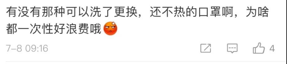 还有网友表示夏天温度高,有没有自带清凉功能的口罩?
