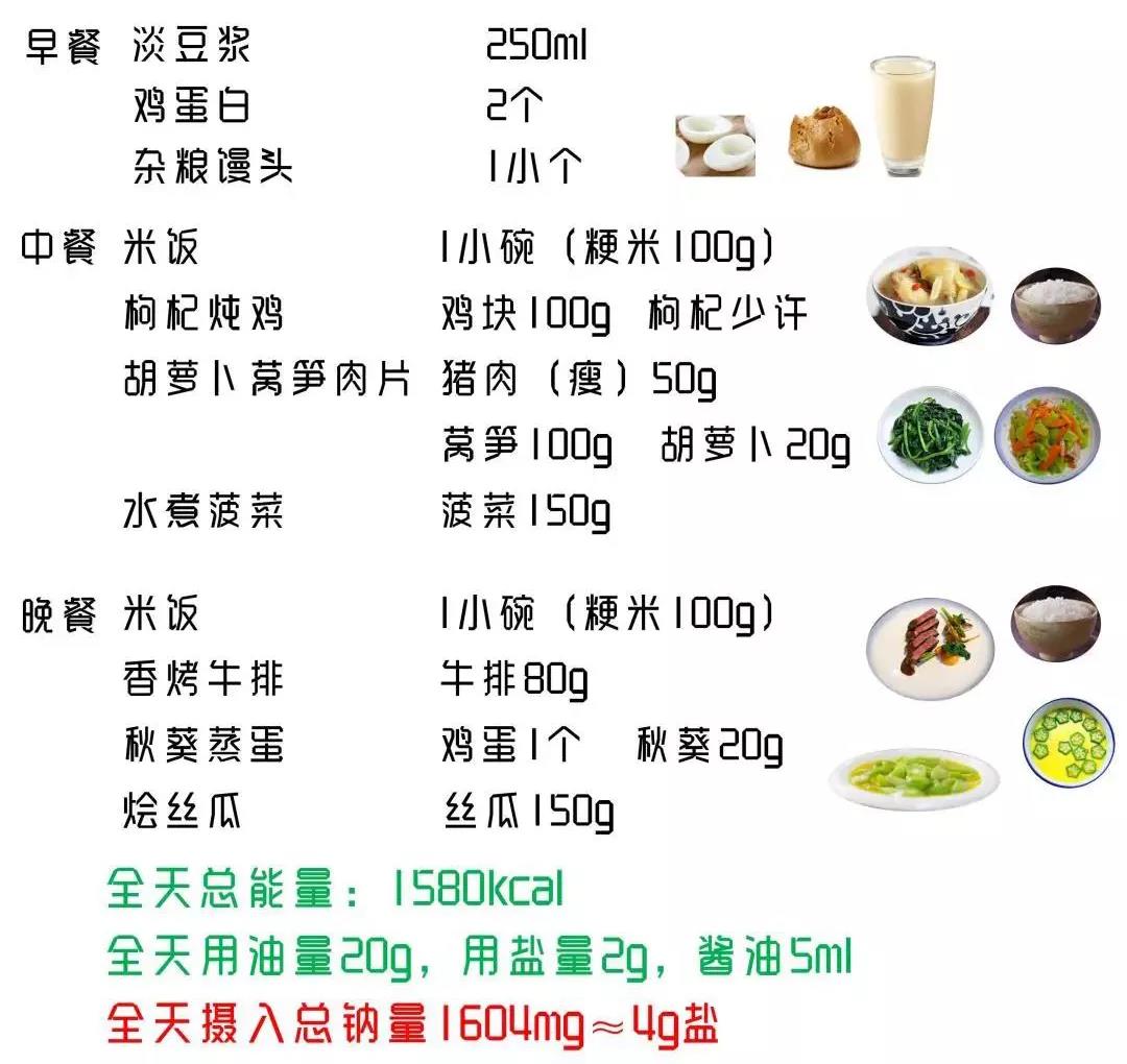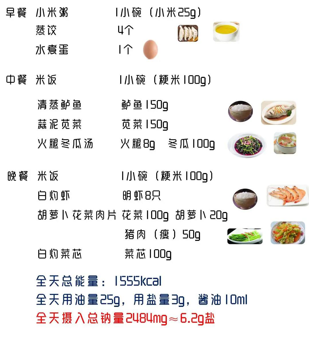 低盐饮食一日食谱(全天食盐摄入量约4克)