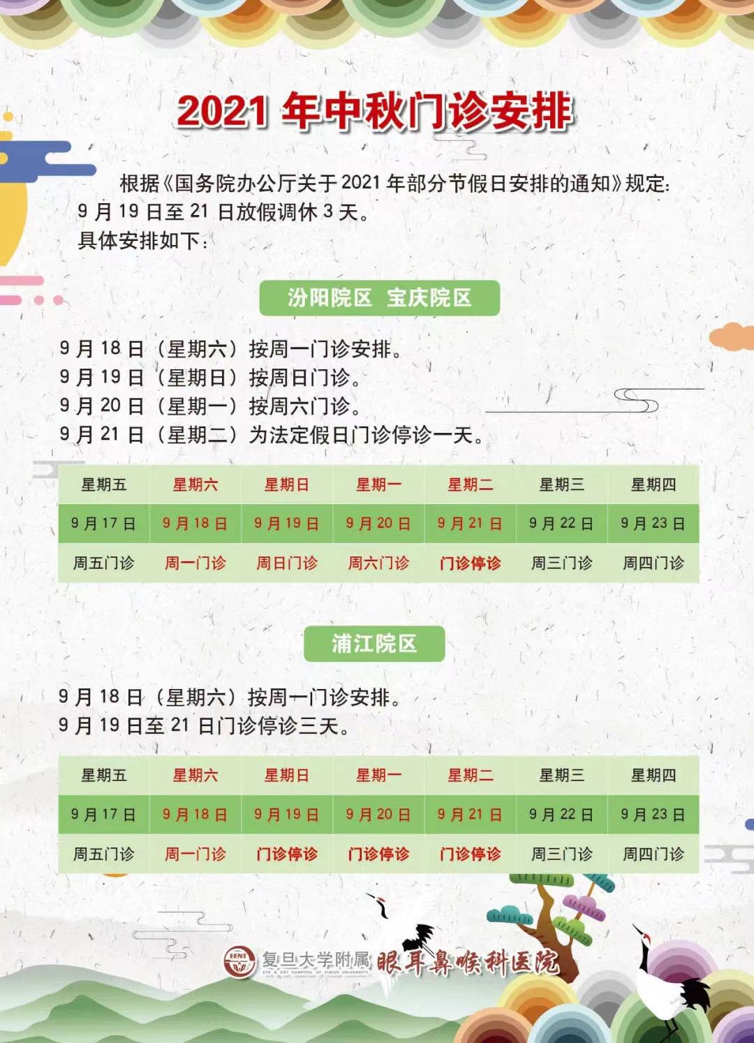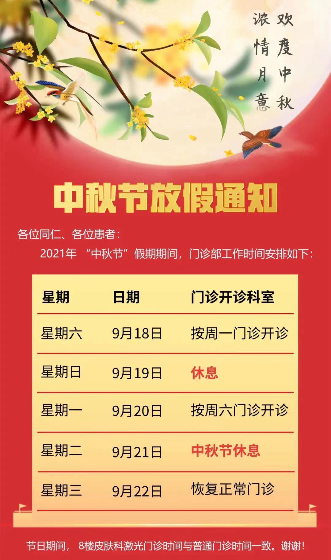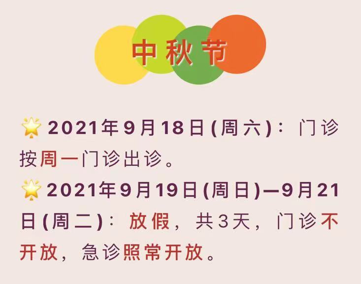 2021年“中秋”假期即将到来,笔者搜罗了本市三甲医院的门急诊放假安排(部分医院假期安排待更新),有备无患,请相互转告哦!
