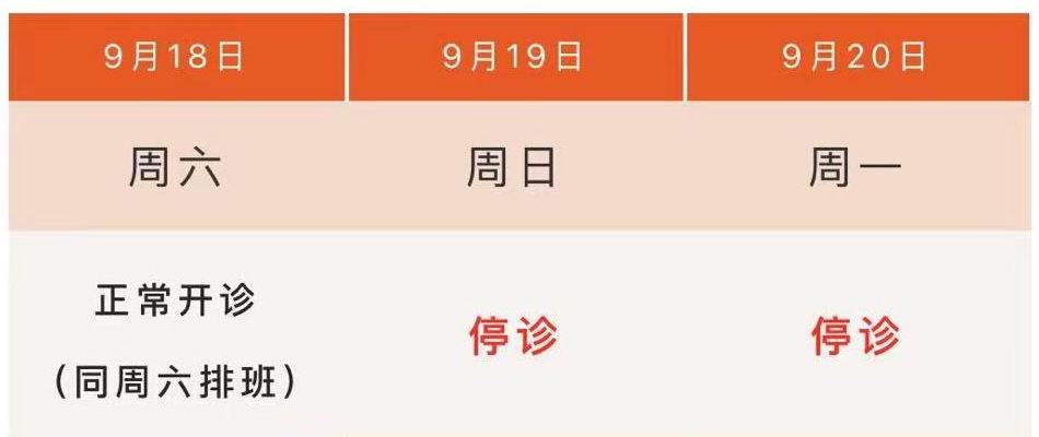 口腔中心:9月21日停诊,9月18日-20日正常开诊