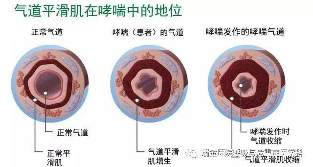 在哮喘长期发生发展过程中,气道平滑肌反复痉挛、收缩,从而发生气道重塑,哮喘症状也随之逐步加重。