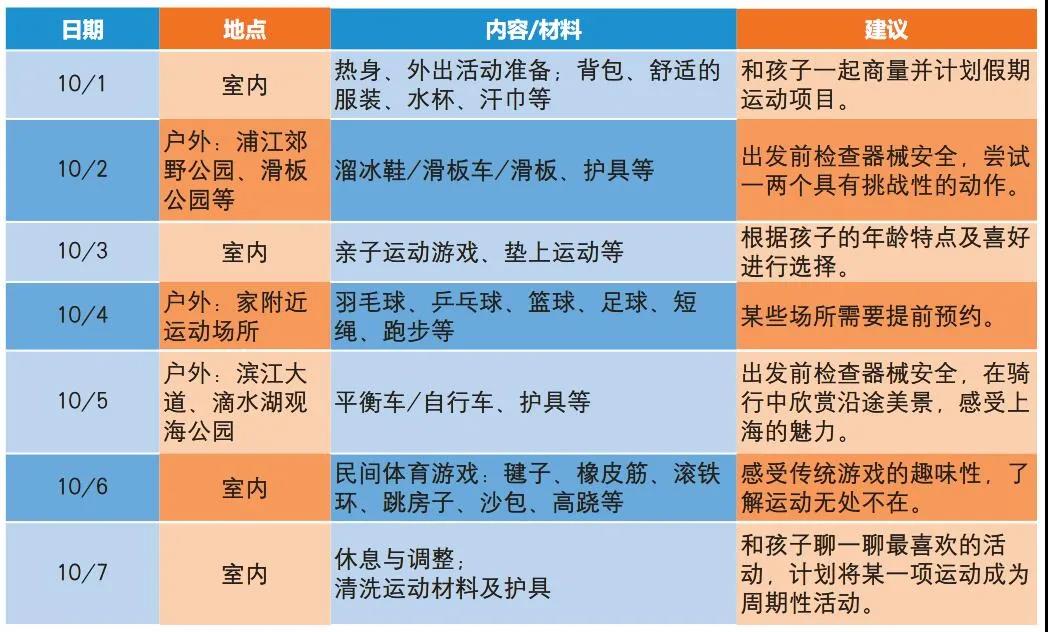 分享一张国庆家庭体育运动计划表