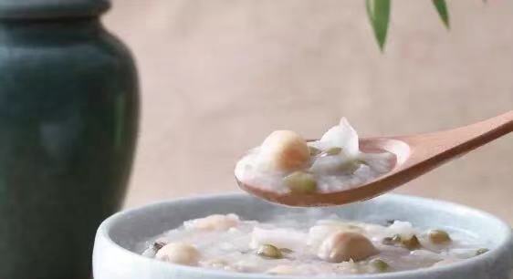 原料:百合30克、大枣20枚、莲子20克、银杏15粒、粳米100克、冰糖适量。做法:莲子先煮片刻,再放入百合、大枣、银杏、粳米煮沸后,改用小火煮至粥稠时加入冰糖稍炖即成。其中百合润肺止咳、清心安神,红枣补气养血,莲子养心神、补脾肾,银杏滋阴养颜,这四种食材,都是秋天里的滋补佳品,煮成一碗粥,营养丰富,老少皆宜。