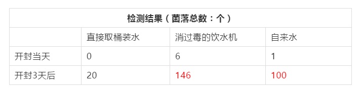 《生活饮用水标准》GB5749-85规定:每100ml饮用水中的细菌总数不得超过100个,也就是说即使是消过毒的饮水机,从3天后接的冷水细菌数量就开始超标了。