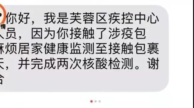 近日,有一位家住长沙芙蓉区的网友在社交网站上表示,因为在办公室帮老板拆了一个快递,健康码变成了黄色。并收到疾控中心的防疫提示,需居家隔离并完成两次核酸检测。