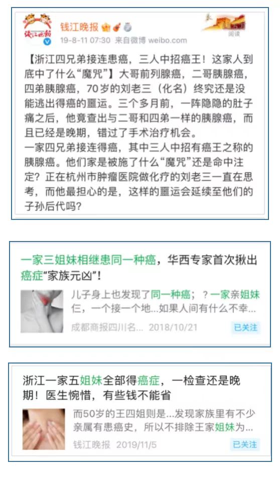 我们经常会看到这样的新闻:“四兄弟接连患癌”“三姐妹患同一种癌”……