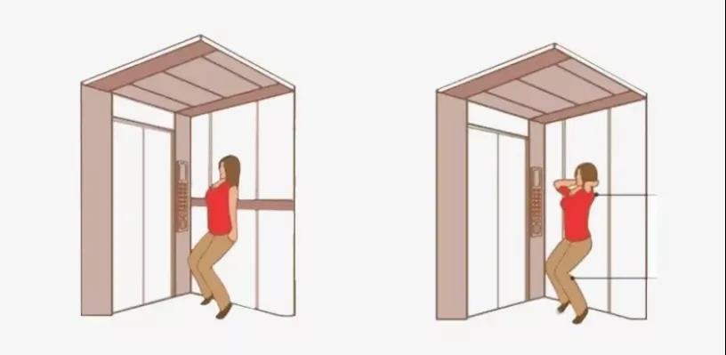 3.如果电梯内没有扶手,用手抱颈避免脖子受伤。