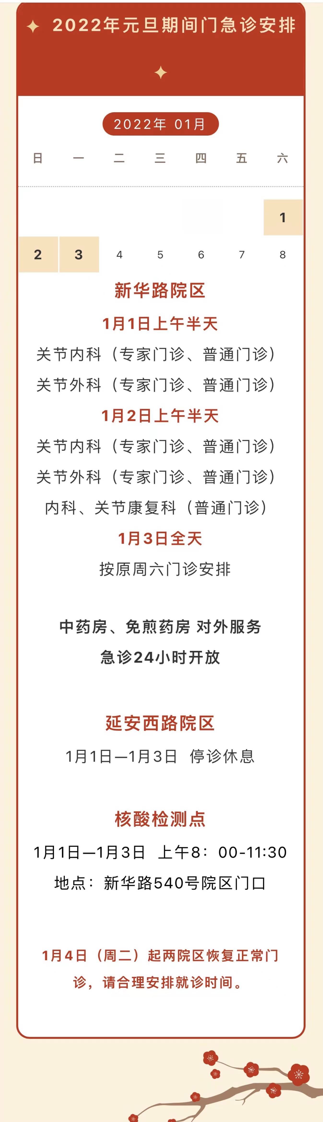 【2022元旦就诊指南】普陀、长宁部分三甲医院的门急诊放假安排,人手一份,有备无患