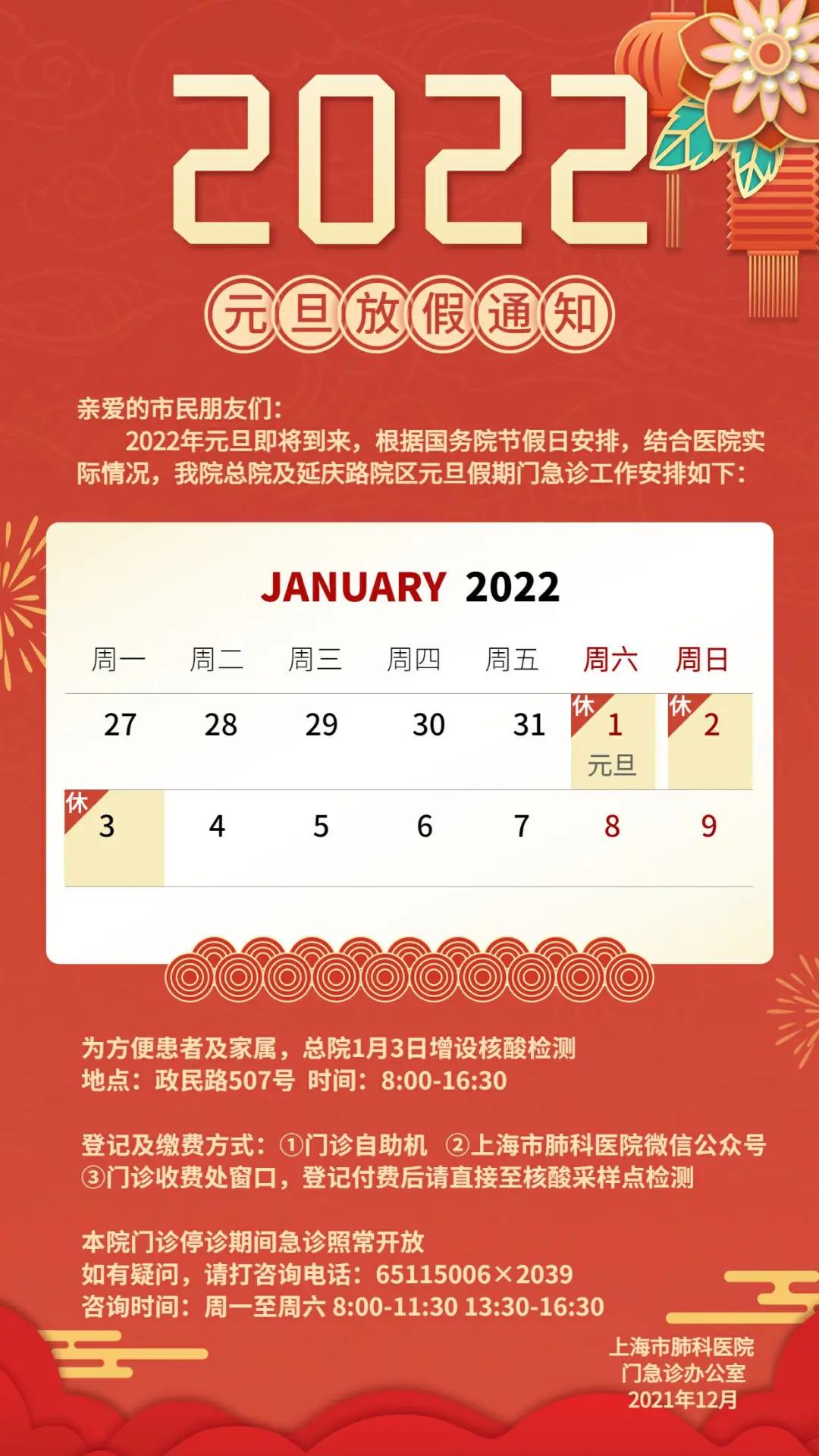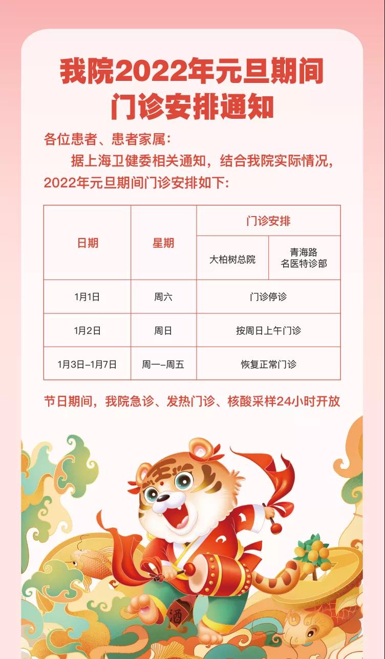 【2022元旦就诊指南】杨浦、虹口部分三甲医院的门急诊放假安排,人手一份,有备无患