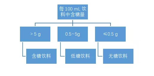 根据一项调研,检测40杯常见市售奶茶中的含糖量,涉及17种奶茶品牌,其中只有1杯含糖量小于0.5g/100ml,而剩余的39杯中有30杯含糖量超过5g/100ml。而我国关于含糖饮料的标准有明确规定,见下图。