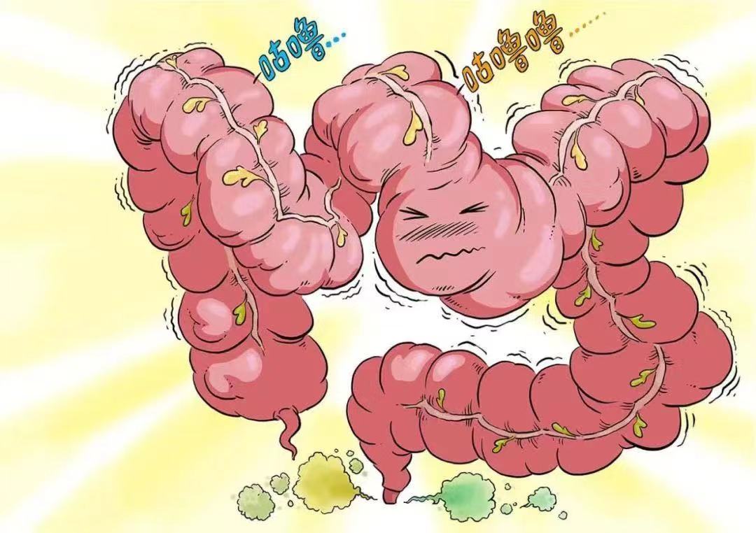 过多的气体让大肠肠道承受不来,在气体和脂肪酸的刺激下,肠道会膨胀、加速蠕动,发出“咕噜咕噜”声。堆积过多的水分也会导致腹胀、腹泻或痉挛。