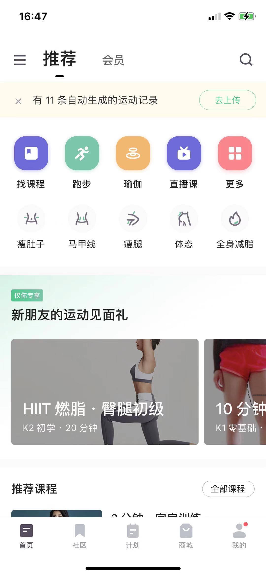 keep偏重于运动管理。输入你的基础信息:身高、体重、体型、生理期、过往运动经历、想改善的身体部位等,就能生成身体数据报告。
