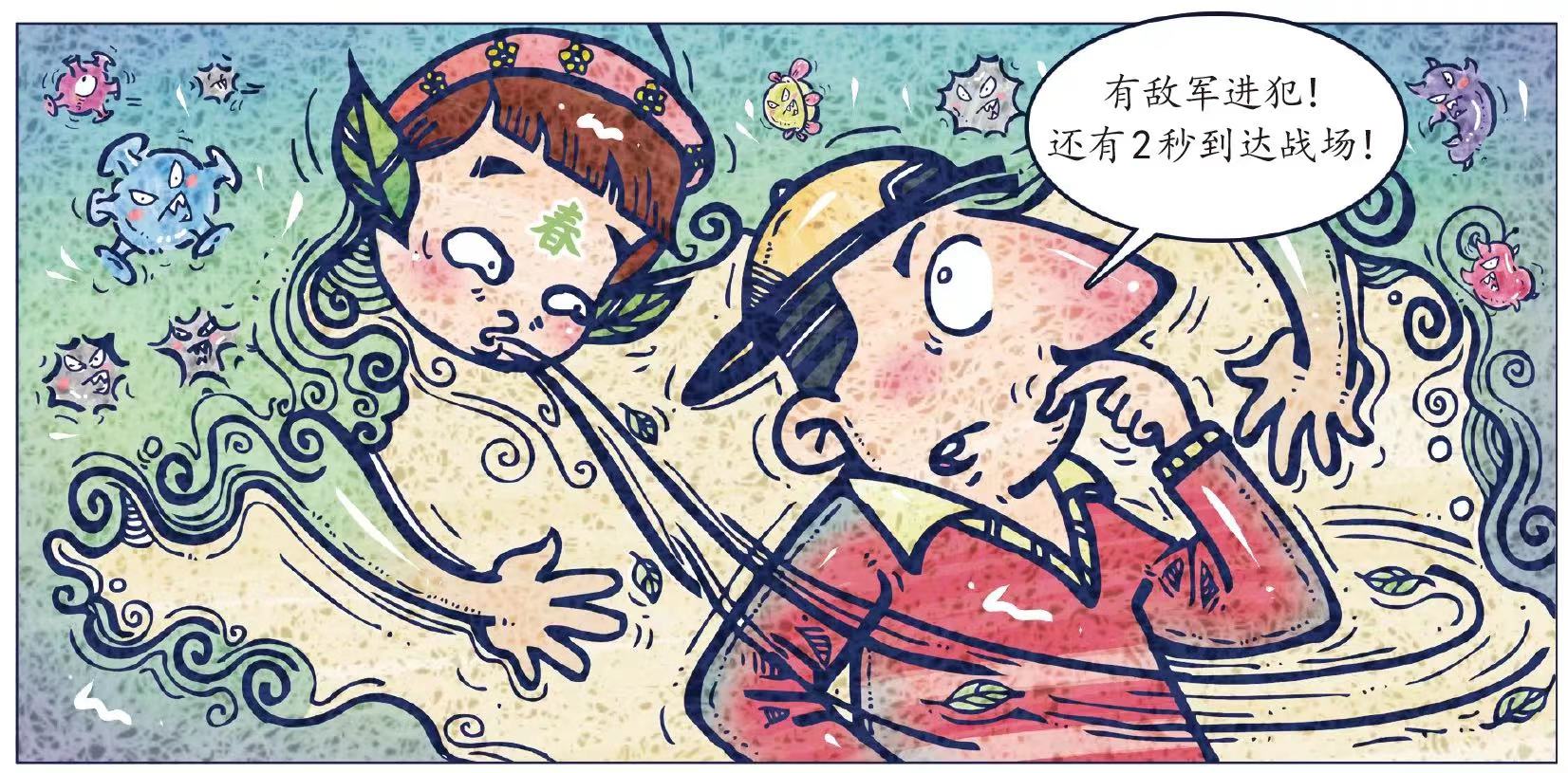 当致病微生物过多时,鼻黏膜意识到有危险,便会逐渐充血,分泌出更多的鼻涕,用来困住敌人。鼻腔神经也拉响警报,开始蓄力,准备通过喷嚏把包裹着敌人的鼻涕“发射”到体外。
