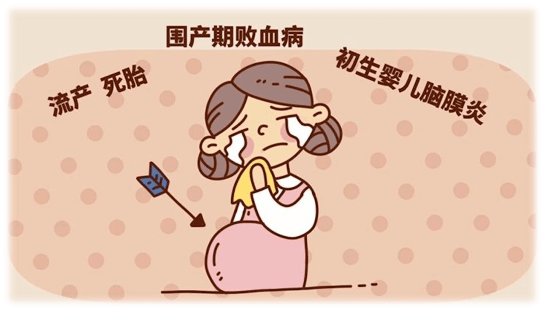 一旦感染了该病菌,轻则出现发烧、肌肉疼痛、恶心或腹泻等症状;重则出现头痛、颈部僵硬、身体失衡或痉挛等症状。受感染的孕妇可能出现早产、流产。有的婴儿虽然顺利出生,但其健康也可能受到影响。健康人群感染该病菌后,通常病情轻微,通过服用抗生素或消炎药就能治愈。