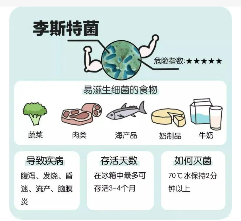 在这些细菌中,最令人头疼的当属 “冰箱杀手”的李斯特菌了,它除了会引起发烧、腹泻、孕妇流产之外,还会引发脑膜炎和败血症。因此,老年人、孕妇和慢性病患者等免疫力较差的人群尤其要注意。