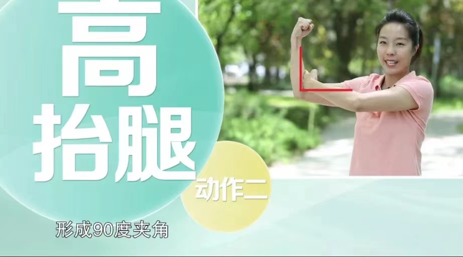 2.正拍第一拍手臂拉下来,用力向下挤压,让小臂与大臂形成90度夹角