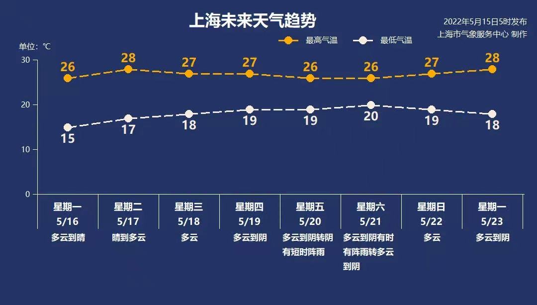 周五至周六,受高空冷涡影响,上海部分地区有分散性阵雨天气,气温起伏不大。