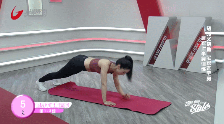 俯身平板臂屈伸不但可以训练核心力量,还可以锻炼肩膀和手臂的支撑力量,可谓一举多得,这个动作建议配合瑜伽垫完成。该动作每次训练做3组,每组40秒,每做完一组间歇20秒休息。