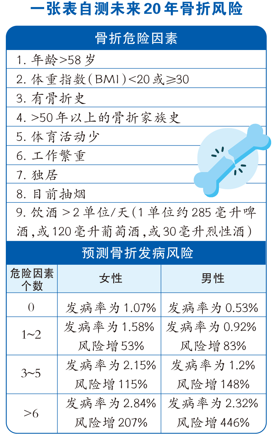 一张表自测未来20年骨折风险