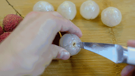 需要注意的是,捏的部位不要太靠下,不然可能会把荔枝的汁水挤出来。