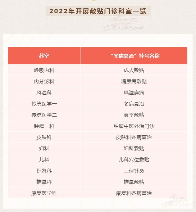 龙华医院2022年“冬病夏治”由夏季膏方、穴位注射、穴位敷贴、中药熏蒸、中药浸泡、针灸、推拿等众多特色的治疗方法组成。