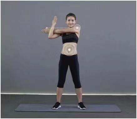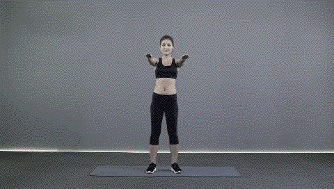 动作要点:挺胸收腹,保持腰背挺直,手臂打开时带动胸部打开,屈肘和直臂交替进行。此动作练习4x8拍。