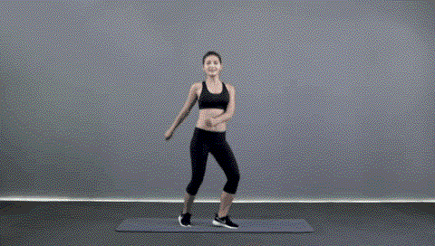 动作要点:挺胸收腹,身体保持放松,跳跃落地时膝关节保持自然微屈。此动作练习8x8拍。