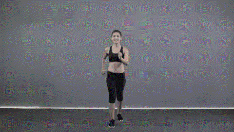 动作要点:挺胸收腹,腰背平直,有短暂腾空,手臂自然摆动,脚尖着地。此动作练习8x8拍。