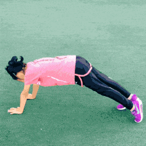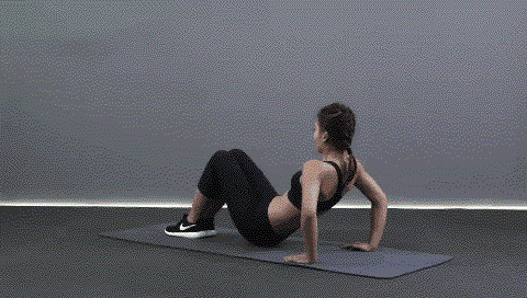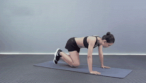 动作要点:腹部持续紧张,躯干与腿部在同一直线上,大臂垂直地面支撑,手肘尽量靠近膝盖。