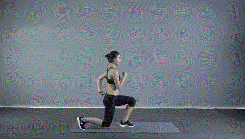 动作要点:自然站立,收腹挺胸,左腿向前迈出成弓步,右腿屈膝慢慢向下,上体正直,两臂扩胸,大腿与躯干垂直,膝盖接触地面后伸直右腿,然后右腿向前迈出,重复相同动作,动作保持约2秒,然后换另一侧。