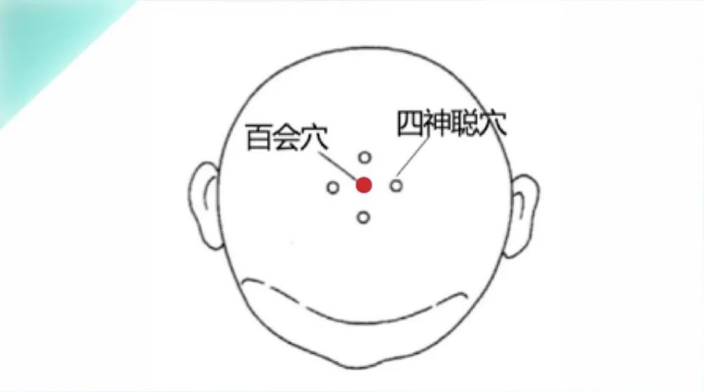 百会穴位于头顶正中的最高点,按摩这里可以提神醒脑、升举阳气。