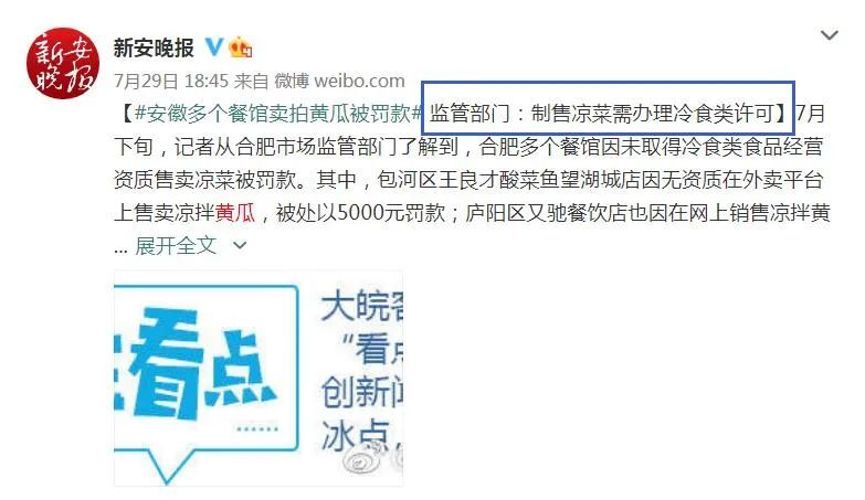 针对安徽多个餐馆卖拍黄瓜被罚款事件,监管部门表示,这些餐馆并非因为“拍黄瓜”被罚款,而是超营业范围从事冷食经营,未取得冷食类食品经营资质。
